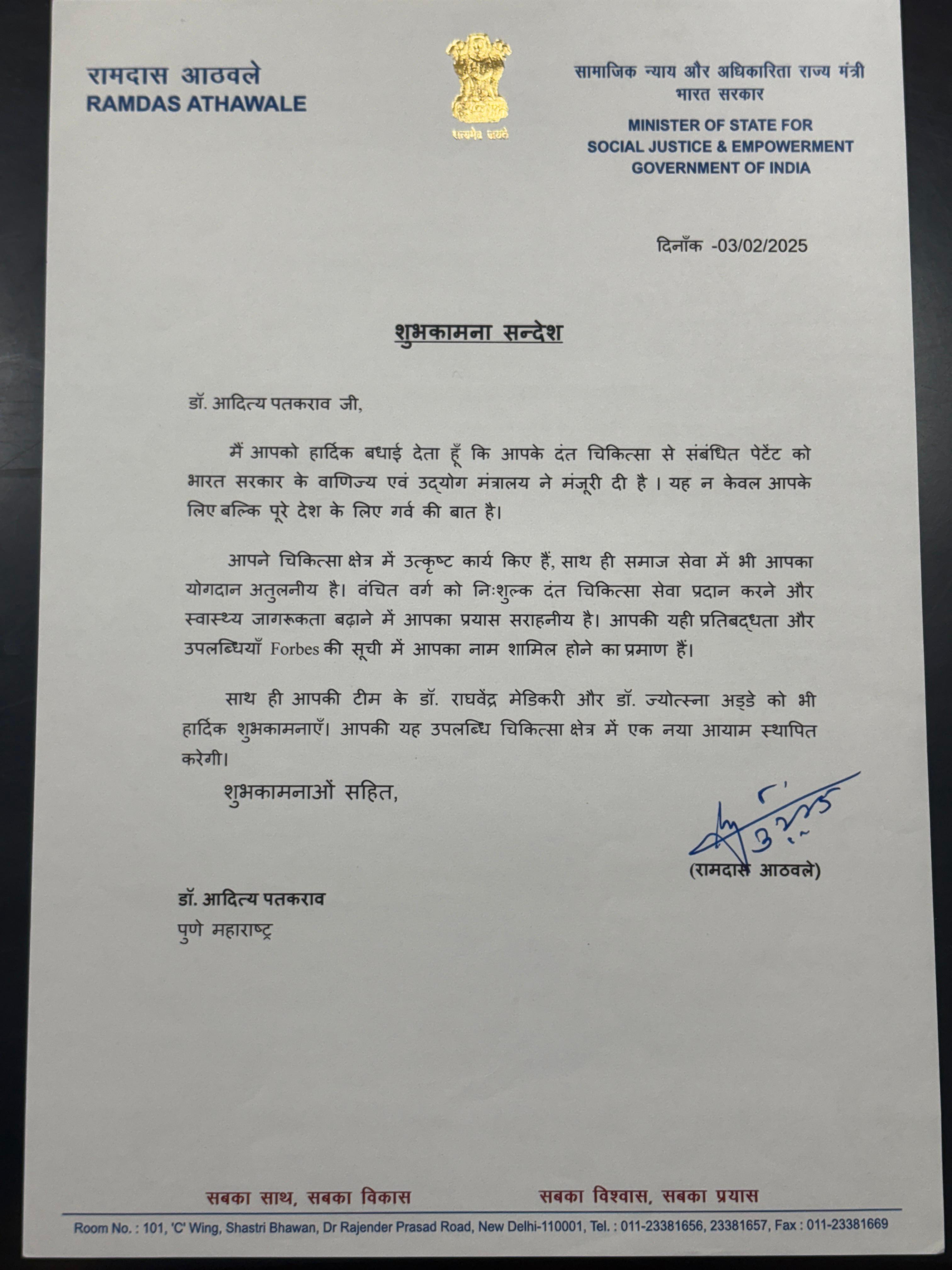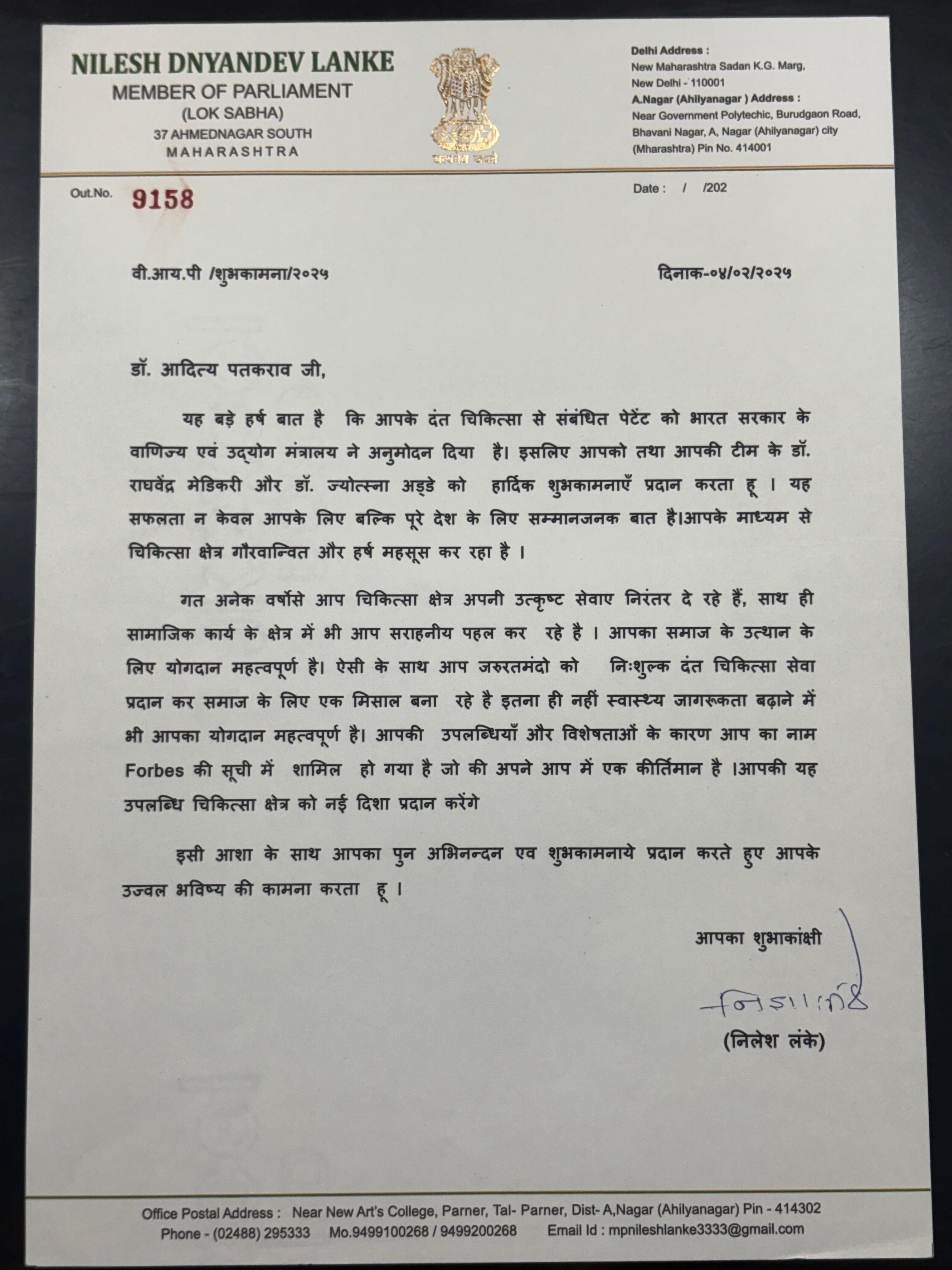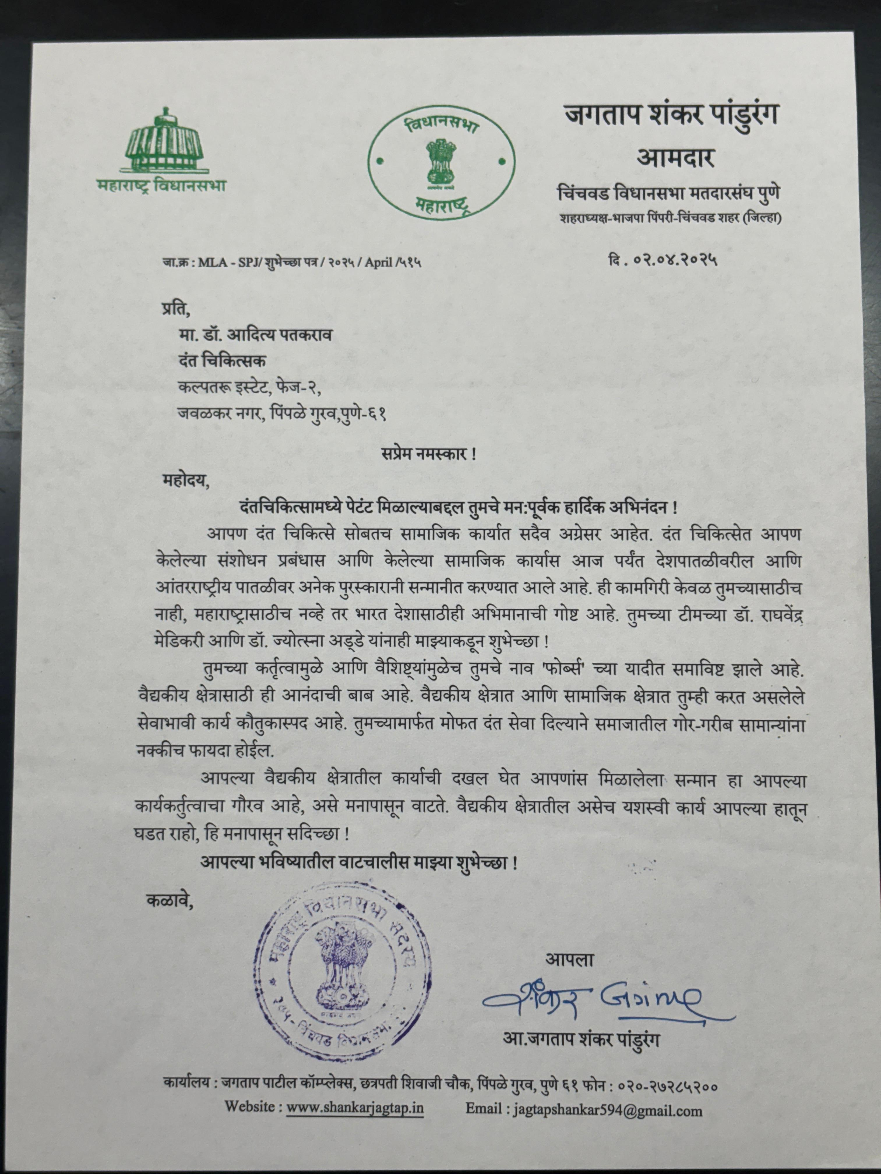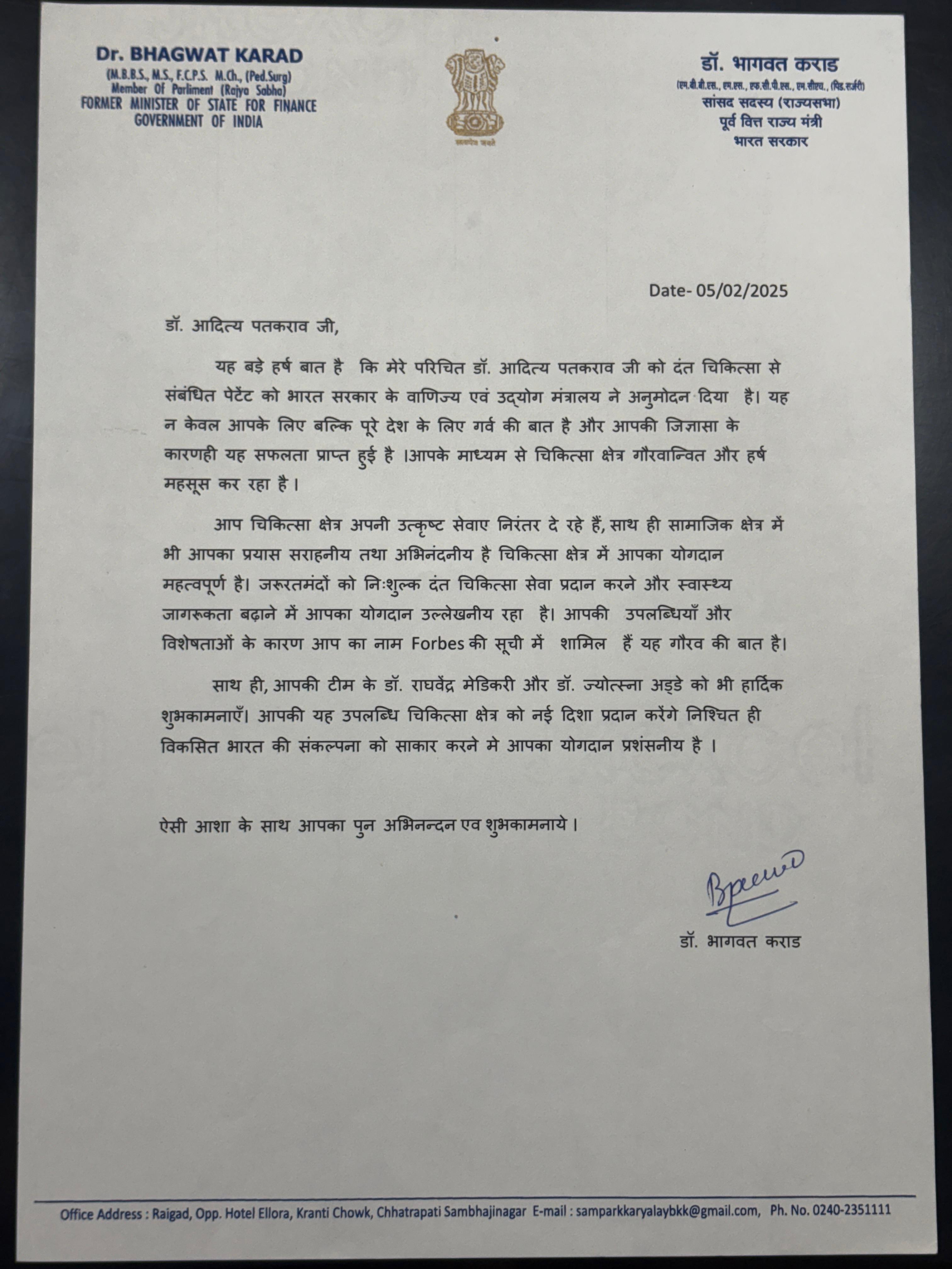 • World Book of Records (UK) — London-based honour officially recognizes Dr. Aaditya Patakrao as the “Highest Tax-Paying Dentist” — a landmark achievement in dental history. United Kingdom